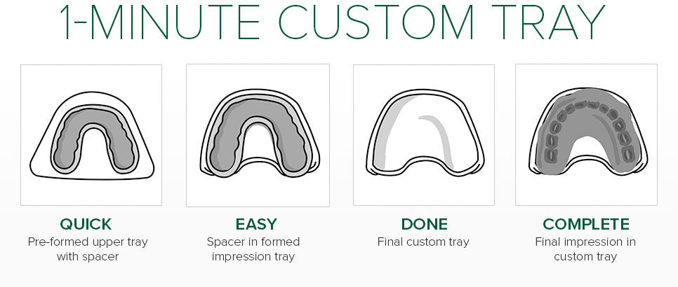 The Easy Tray system is fast, clean and order-free and saves you from the mixing, mess and smell of fabricating acrylic trays. Just soften the thermoplastic material in hot water (>170°) for less than a minute, then mold it directly in the mouth of the patient or on a model. Place the molded Easy Tray under cold running water for 30 seconds - remove the spacer and your tray is ready.